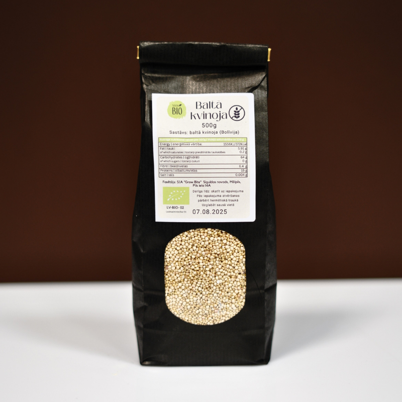 Izvēlieties BIO Baltā kvinoja kā veselīgu un barojošu alternatīvu tradicionālajiem graudiem. Šī bioloģiskā kvinoja ir bagāta ar olbaltumvielām, šķiedrvielām un būtiskām minerālvielām, padarot to par lielisku papildinājumu jebkurai maltītei.