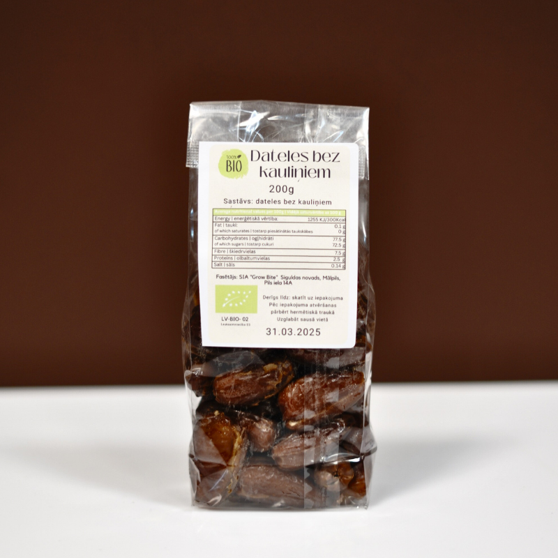 Izbaudiet dateļu dabīgo saldumu un barojošās īpašības katrā kumosā. Tās ir veselīga izvēle, kas lieliski papildina jūsu ikdienas ēdienkarti!
