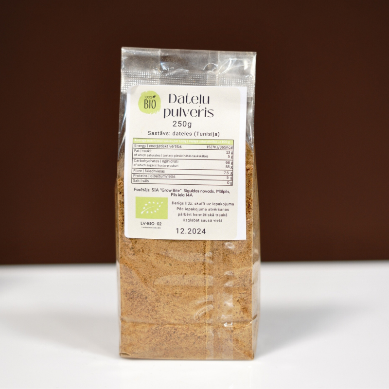 Bioloģiskais dateļu pulveris ir dabīgs un veselīgs saldinātājs, kas piedāvā maigu karamelizētu garšu un plašu pielietojumu virtuvē. Tas ir iegūts no 100% bioloģiskām datelēm un ir pilnvērtīga alternatīva rafinētajam cukuram.