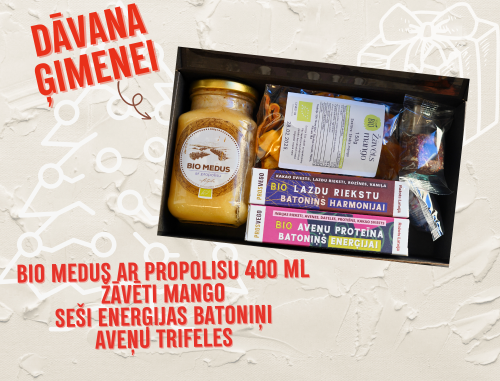 - BIO medus ar propolisu (400ml) – Dabisks medus, bagātināts ar propolisu, kas sniedz ne tikai saldumu, bet arī imunitāti veicinošas īpašības.