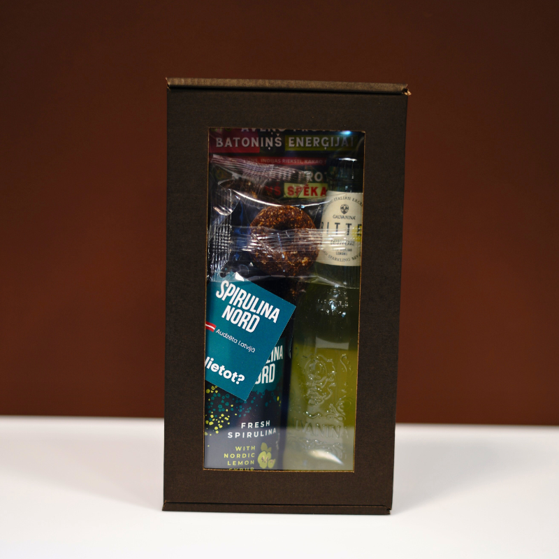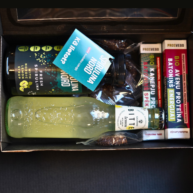 Dāvanu kaste ar lentīti: Elegants noformējums, kas padara šo komplektu par ideālu dāvanu veselīga dzīvesveida cienītājiem.