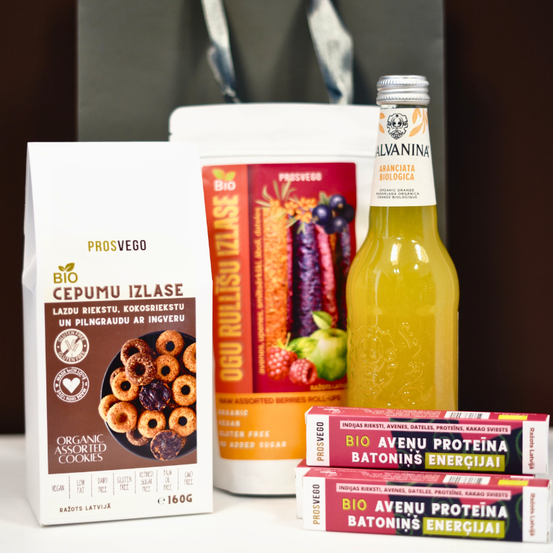 Šis gardumu komplekts ir ideāls, lai iepriecinātu sevi vai savus mīļos ar dabiskām un bioloģiskām sastāvdaļām, kas sniedz veselību un prieku. Bez rafinēta cukura, glutēna un laktozes – šie produkti ir veselīgi, bet garšīgi.