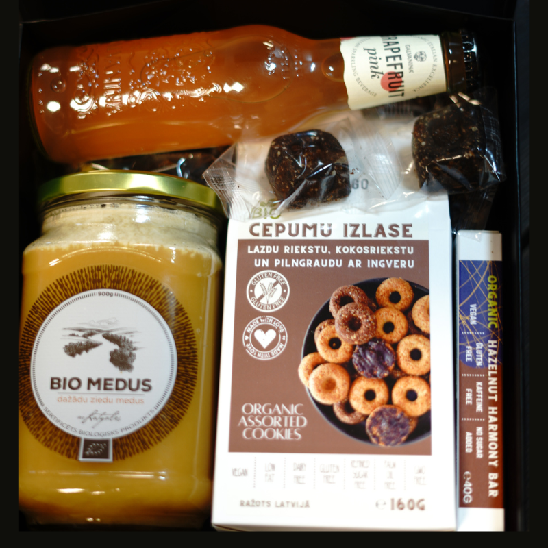Šis komplekts apvieno izsmalcinātu garšu, veselīgas sastāvdaļas un elegantu noformējumu, radot ideālu dāvanu jebkurā svētku reizē vai vienkārši, lai iepriecinātu tuvākos. Visi produkti ir bioloģiski, bez glutēna un rafinēta cukura, piedāvājot gardus un veselīgus našķus, kas nekādā veidā neietekmē jūsu labsajūtu.