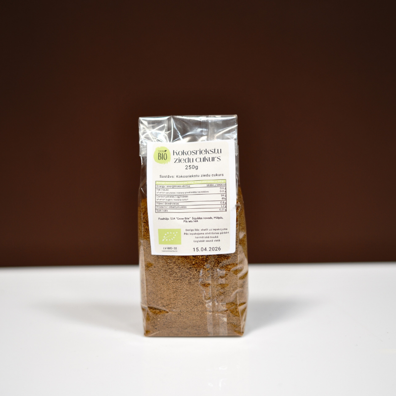 Kokosriekstu ziedu cukurs ir dabīgs, bioloģisks saldinātājs, kas iegūts no kokosriekstu ziedu nektāra. Tas piedāvā maigu karameles garšu un ir lieliska alternatīva rafinētajam cukuram.