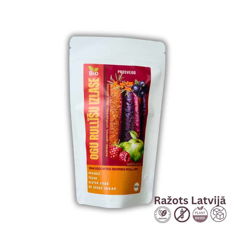 Svars: 100 grami. Vienā iepakojumā septiņpadsmit rullīši. Bez laktozes, cukura, glutēna, bez ĢMO un konservantiem.