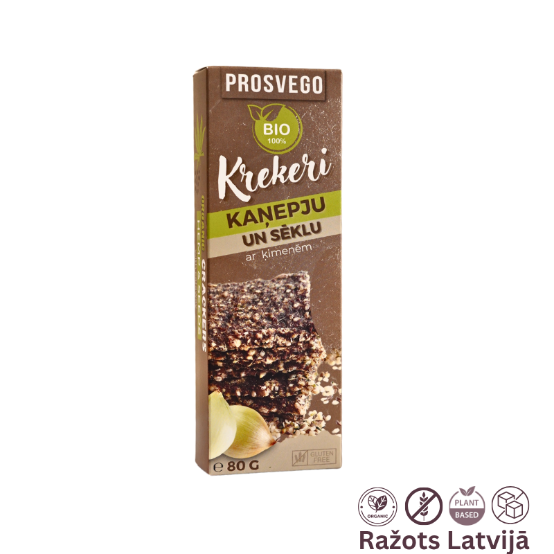 BIO kaņepju un sēklu krekeri ar ķimenēm ir kraukšķīga, aromātiska un uzturvielām bagāta uzkoda, kas piemērota veselīgam dzīvesveidam, sportistiem, veģetāriešiem un vegāniem. Tie ir gatavoti no bioloģiski audzētām sastāvdaļām, nesatur glutēnu, laktozi un cukuru, un ir bagāti ar šķiedrvielām, augu proteīnu un vērtīgajām Omega-3 taukskābēm.